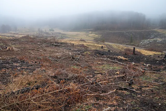 Nos, ennek hűlt helye. A jobb oldalon még megmaradt fák, a bal oldalon pedig a kiirtott rész.