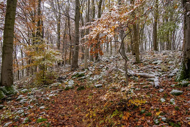 A Jancsi-hegy mohás sziklái fehéren világítottak a sárga avar közül.